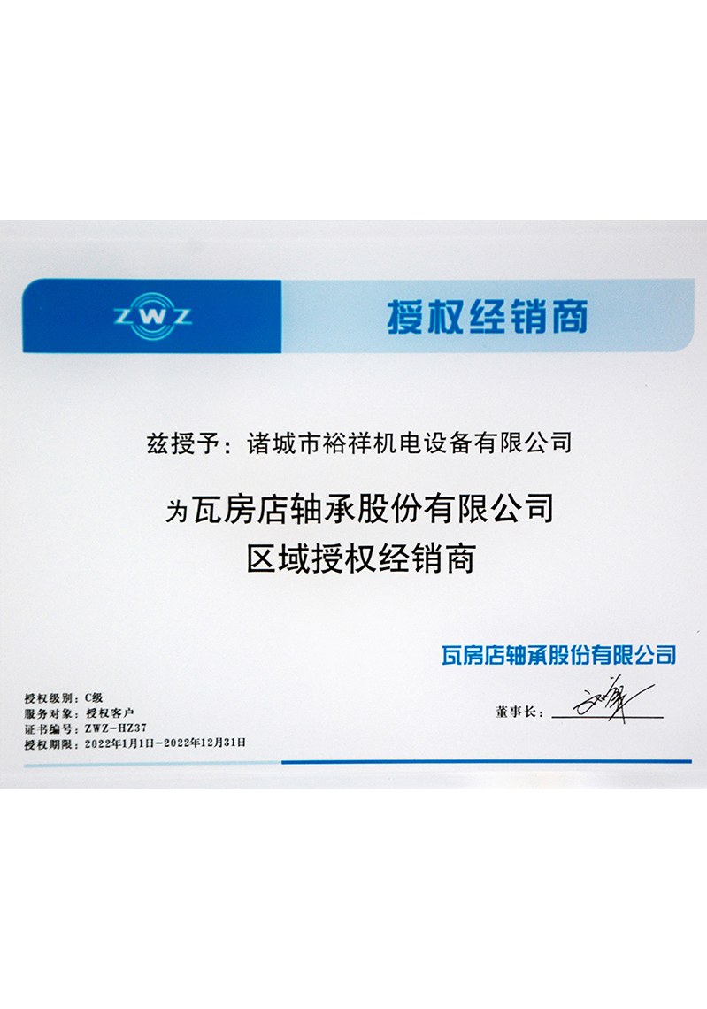 ZWZ軸承授權(quán)證書