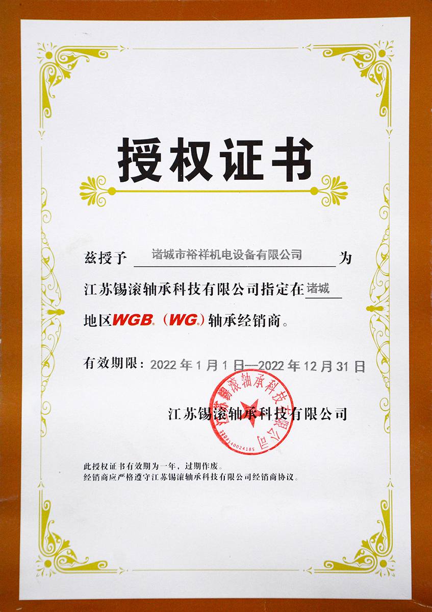 WGB軸承授權(quán)證書