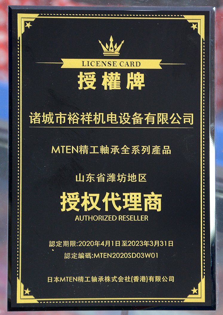 MTEN軸承授權(quán)證書